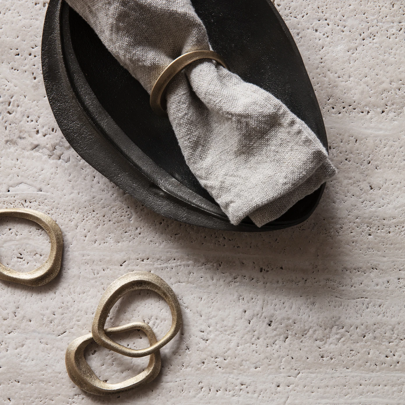 Der Flow Serviettenring im praktischen 4er Pack stammt von der Marke Ferm Living und besteht aus einem massiven Messingguss, welcher für einen eleganten Touch auf dem Esstisch sorgt. Die Packung enthält vier Serviettenringe mit deren Hilfe sich auf einfache Weise eine einheitliche und stilvolle Tischdekoration zaubern lässt.